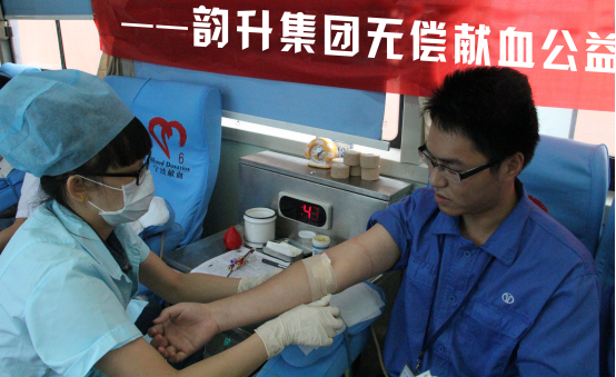 以“做一个受社会尊重的人,建一家受社会尊重的企业”为核心价值观的韵升员工,把无偿献血当成一种社会责任。公司有关领导表示,只要社会需要血液,韵升员工随时愿意伸出援手。