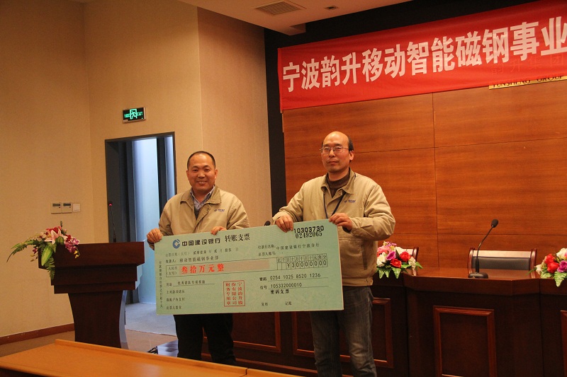 会始,毛应才回顾了移动智能磁钢事业部团队在2016年创下的佳绩,对以邬佳浩为代表的先进团队及积极协助配合事业部发展的相关职能部门予以了充分肯定,宣读具体表彰人员名单后,毛应才代表公司向受表彰的先进团队颁发了30万元现金支票作为奖励。