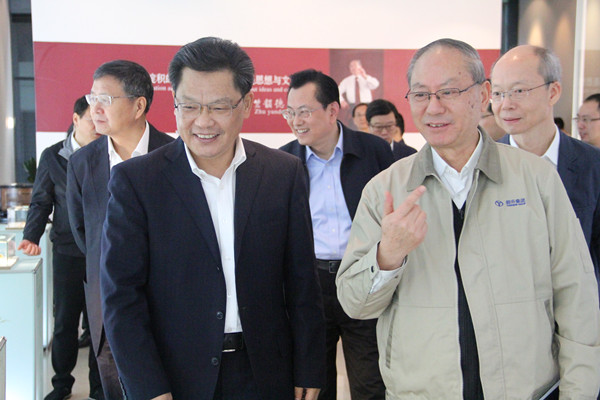 10月31日上午,浙江省委常委、组织部部长任振鹤到韵升视察,了解公司在技术创新、人才引进培养以及产品研发等方面的情况,集团公司董事长竺韵德在二园展示中心予以接待。宁波市委副书记、市长裘东耀,鄞州区委书记胡军等陪同参加调研。