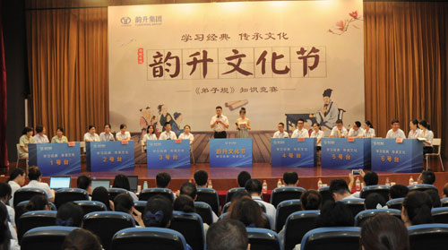 当天是“韵升文化节”正式开幕的日子,上述场景就发生在开幕式后举行的《弟子规》知识竞赛决赛中。今年首次设立的“韵升文化节”,活动主题为“学习经典,传承文化”,意在进一步营造良好的学习氛围,激励员工学习国学的热情。