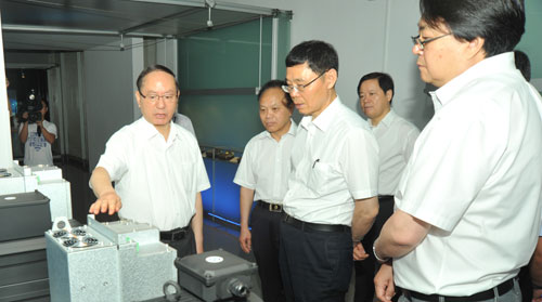 6月19日上午,中国工程院院士、大连理工大学校长郭东明一行十余人到我司参观调研。宁波市副市长陈仲朝、高新区管委会主任黄利琴等陪同参加此次调研。集团公司董事长竺韵德、总裁竺晓东等在韵升二园展示中心予以接待。