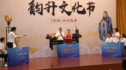 作为本届文化节的开幕活动,“《论语》知识竞赛”的决赛于当日在韵升三园影视厅打响。六支队伍上演精彩对决,经过三个环节的切磋较量,最终确定了名次归属。
