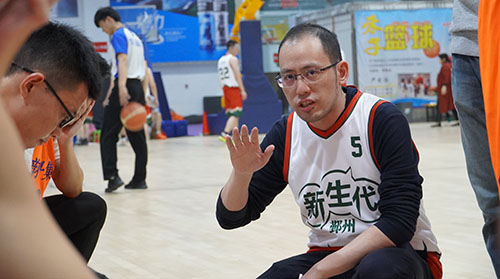 第二节开始,新创会篮球队这边开始屡屡用内线中锋的高度制造杀伤,而我司篮球队这边则利用灵活而富有冲击力的锋线进行突破,双方都将自己有最大把握进行得分的战术摆上台面。在场边,公司总裁竺晓东亲自当起了教练员,暂停期间他给公司篮球队的队员们分析场上的形势和对方球员的特点,并进行战术布置,鼓励大家要思路清晰,打出自己的特色。