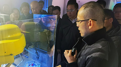 调研组一行随后到韵升二园展示中心进行参观,竺晓东为大家详细地介绍了公司的发展脉络以及公司目前的产业分布情况。他说,韵升1991年开始创业,明年即将迎来创立30周年的重要节点。在这30年的发展过程中,公司始终坚守在制造业的“麦田”,目前在稀土永磁材料、伺服电机、智能制造装备等领域均有所发展,产品得到了广泛的认可和应用。对于韵升长期以来脚踏实地、健康清晰的发展理念,调研组成员们都给予崇高评价。