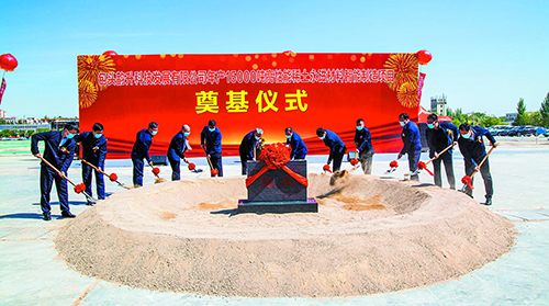 在热烈的礼炮声和雷鸣般的掌声中,包头市委副书记、市长张锐,集团董事局副主席、股份公司董事长兼总经理竺晓东等领导同擎金锹,一起为包头韵升新建智能制造项目奠基培土。