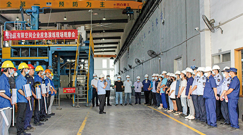 本次观摩会共有来自北仑区应急管理局、大碶街道应急管理所、第三方安全技术服务机构、北仑区各企业等单位的40余位负责人参加。北仑区应急管理局副局长王顺祥到场指导,我司材料制造部负责人任志远担任演练总指挥。