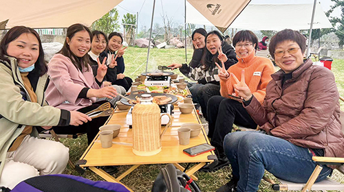 除此之外,现场还有打麻糍、做青团、天幕烧烤活动,大家摩拳擦掌、一显身手。吃着自己做的美食,坐在天幕下说说工作、聊聊家常,在这个微凉春日的谈笑间,同事间的感情进一步拉近了。