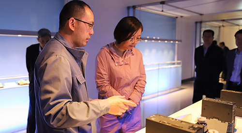 孟繁英一行边观摩产品与相关装备边聆听讲解,并不时就有关问题与竺晓东进行探讨。孟繁英表示,韵升长期坚守制造业,通过持续地创业创新,不断地做专做精,这种理念与做法令人钦佩。这种脚踏实地的精神,值得许多企业学习。