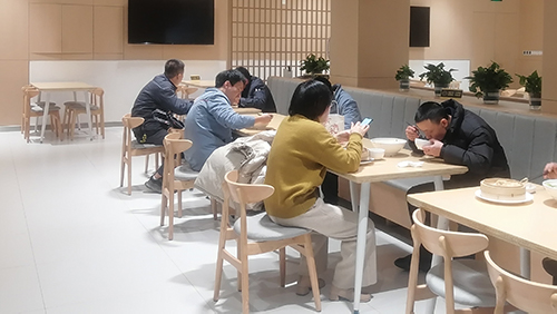 目前,餐厅点餐服务供应的主要有现烫面条、中式点心及小炒菜(每日四种可选)。员工们可通过现场点单或手机端E餐通预定两种方式下单。