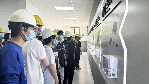 在展示中心参观过程中,来访师生通过观摩丰富的产品与现场演示了解了公司产业布局、技术创新等方面的情况。座谈会上,公司相关负责人为来访师生作了补充介绍,进一步讲解了公司组织架构及具体业务模块。随后,在公司相关工程师的带领下,师生们到四园参观烧结钕铁硼坯料的生产流程。